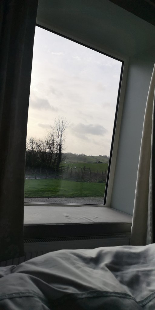 The cottage we had rented was beautiful. It was on a farm, and had only just been converted into accommodation. When we arrived there was bread, milk, eggs, bacon…. And a bottle of prosecco. But, there was also an amazing view and a log burner.