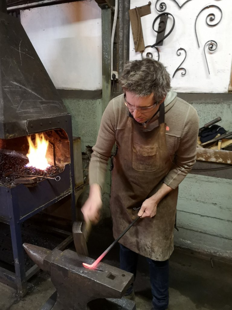 Guy made a toasting fork, and I made a cheese knife. It was bloody hard work though.